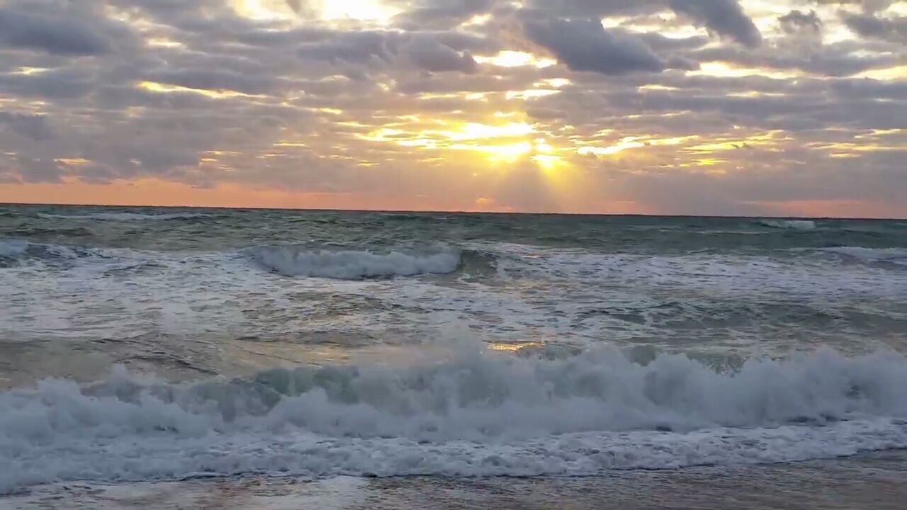 Windy beach sunrise